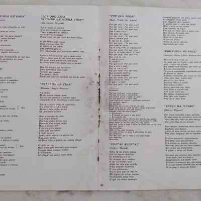 Possui encarte em estado razoável, com desgaste na dobra e mancha de umidade.