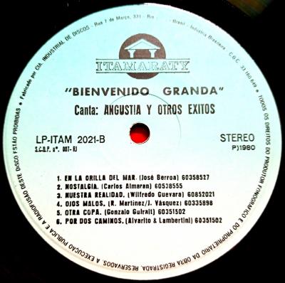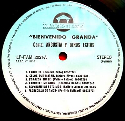 LP 12" Canta: Angustia Y Otros Exitos - Bienvenido Granda