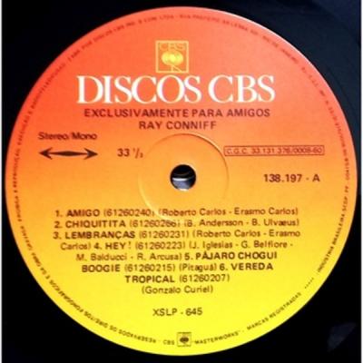 LP 12" Exclusivamente Para Amigos - Ray Conniff And His Orchestra & Chorus